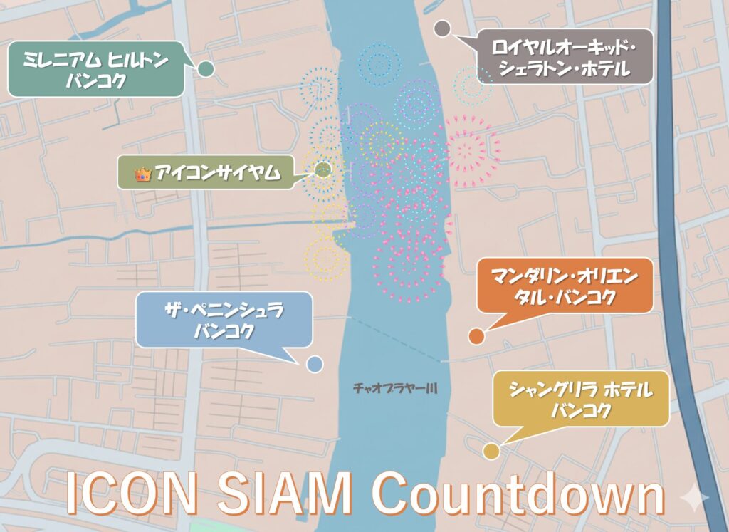 ICONSIAM周辺の花火鑑賞ができるホテルマップ