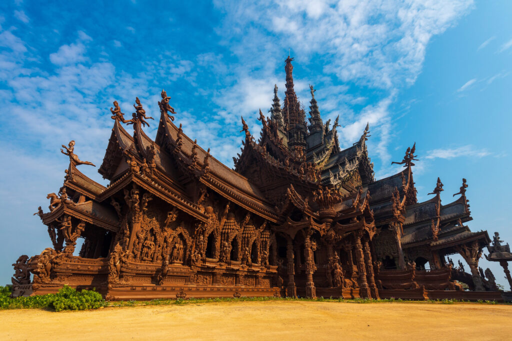 サンクチュアリ・オブ・トゥルースは、パタヤを代表する観光スポットのひとつで、すべて木造で造られた壮大な建築が特徴です。