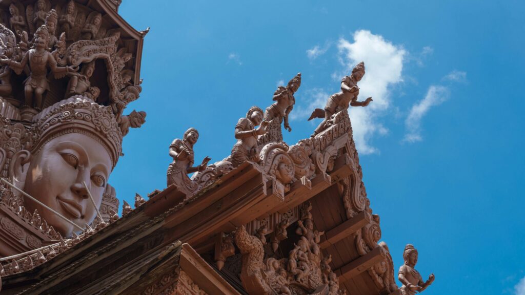 サンクチュアリ・オブ・トゥルースは、釘を使わずに建てられた全木造の寺院建築で、彫刻や装飾の細かさからも高い評価を受けています。