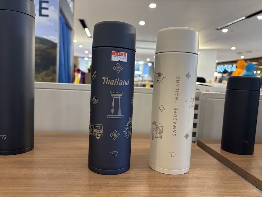 一部のモール内家電店などで取り扱いがある、象やタイの寺院をあしらった特別デザインのマグボトル。