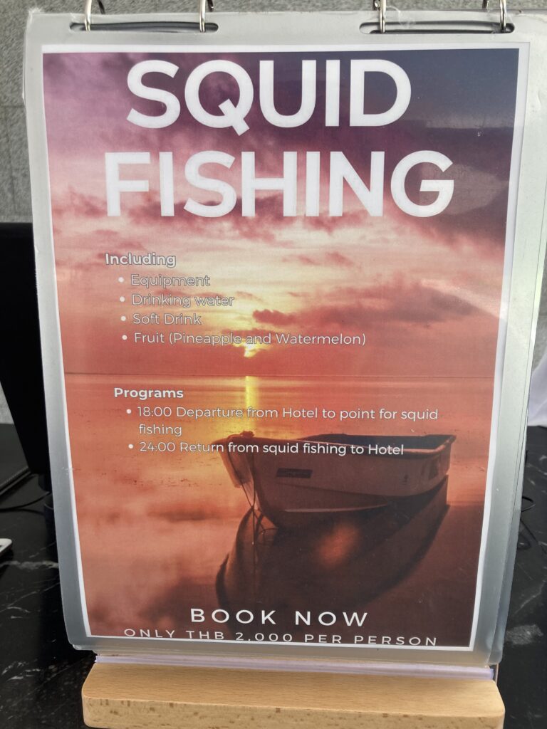 また、ホテルではレンタサイクルやイカ釣りのアクティビティツアーの看板がありました。