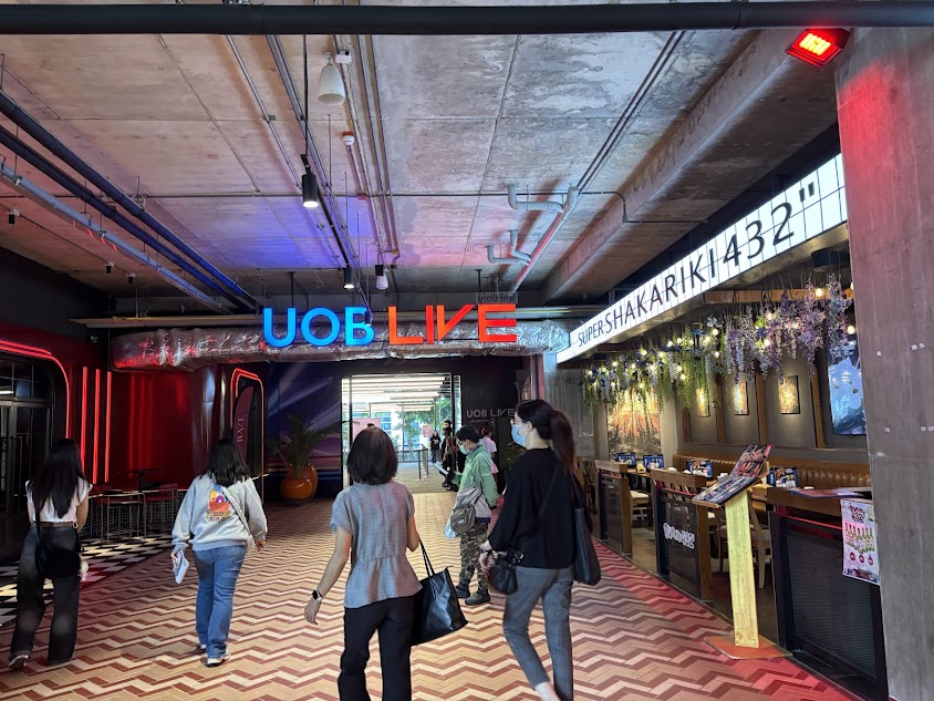 UOB Liveはエムスフィア6階に位置し、全エレベーターが直通ではないため専用ライン利用が推奨されます。エスカレーターはライブ当日混むので早めの移動が賢明です。