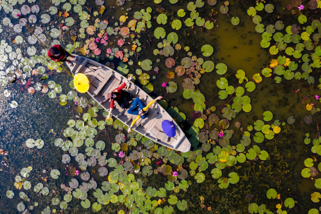 Unlike the crowded Damnoen Saduak, this market offers photogenic lotus ponds and authentic Thai local life.